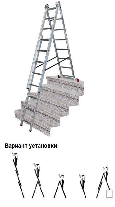 Благодаря дополнительным крюкам модель может устанавливаться на лестничных маршах. Пружина на защёлке-фиксаторе устанавливается только на узкой секции лестницы, что обусловлено возможностью использовать узкую секцию в перевёрнутом на 180° положении..