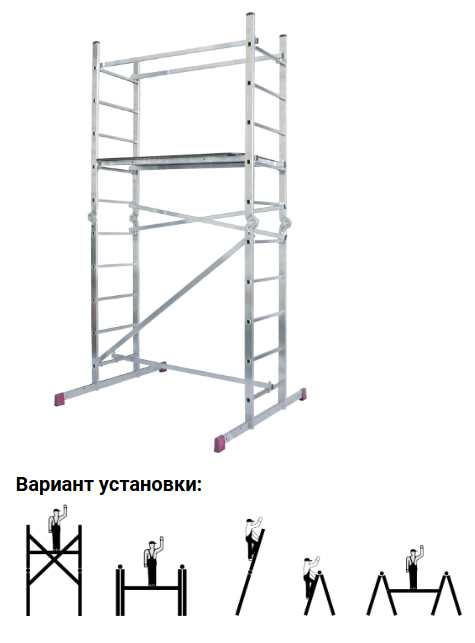 Универсальные шарнирные подмости. Рабочая высота - 4,00 м. применяема как 2 отдельные лестницы с 10 перекладинами или две двухсторонний стремянки 2х5 перекладин