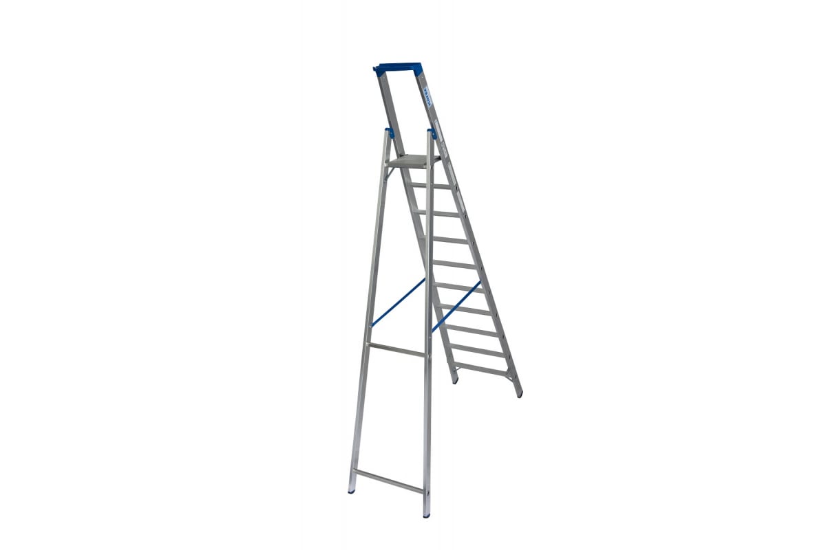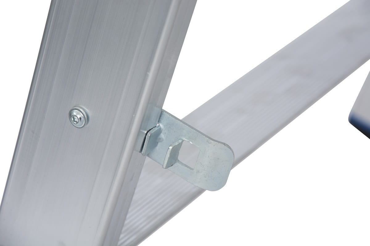 Прочная алюминиевая для профессионального использования стремянка с многофункциональной полкой и крюком для ведра.