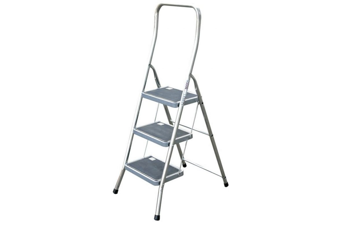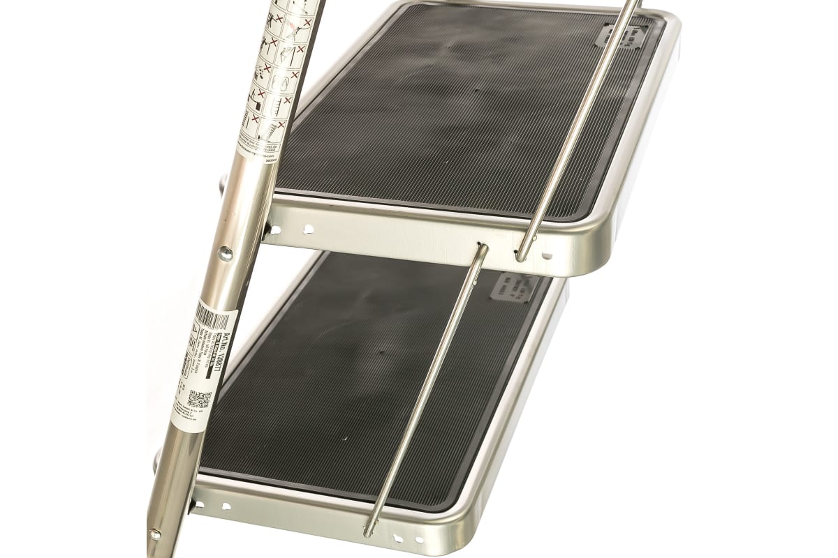 Алюминиевая подставка с большими ступенями безопасна при подъеме и спуске. Подходит для разнообразных работ внутри помещений..