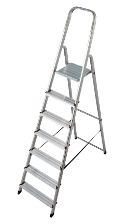 Стремянка надежная 7-ми ступенчатая лестница из алюминиевого профиля. Небольшой вес изделия позволяет с легкостью вести работы, требующие частой перестановки стремянки с места на место. На широких профилированных ступенях можно долго стоять без чувства усталости. Верхняя ступень шириной 60 см и дугой безопасности высотой 60 см гарантирует удобную и безопасную работу.