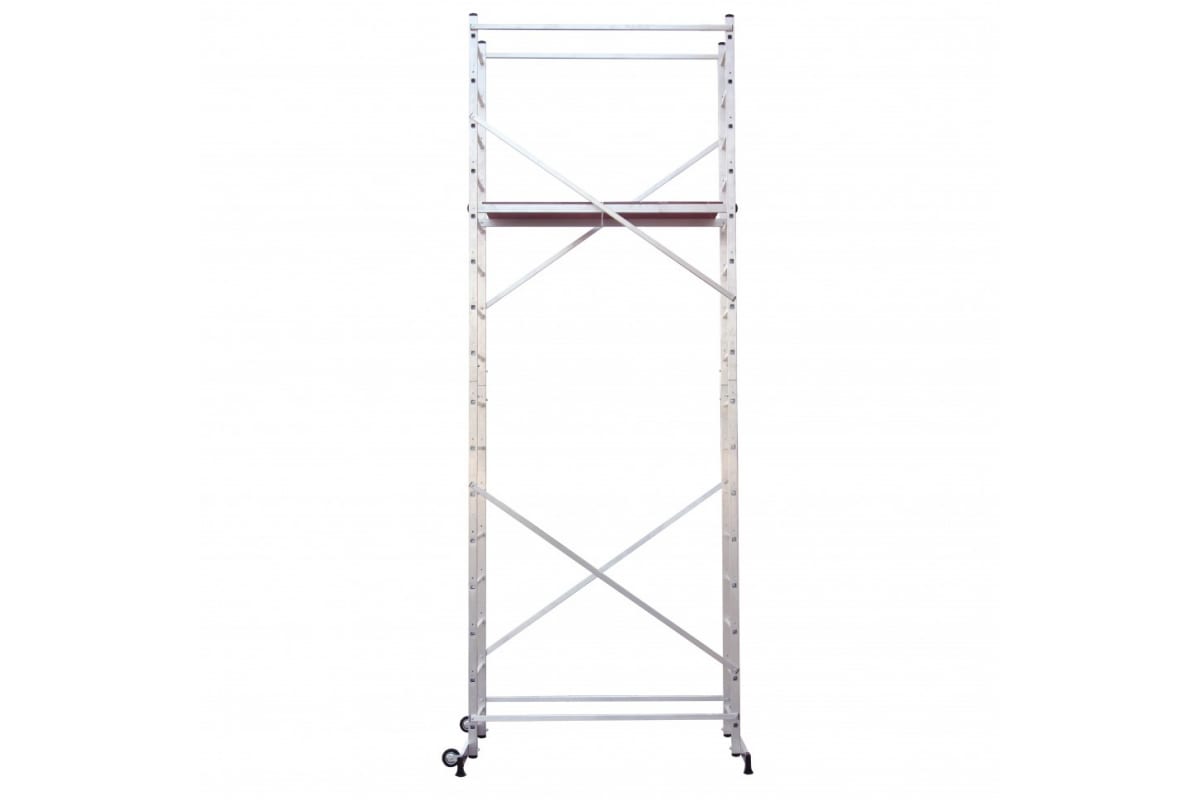 Высоту помоста можно легко отрегулировать. Траверсы также регулируются по длине, чтобы вышку можно было установить вплотную к стене..