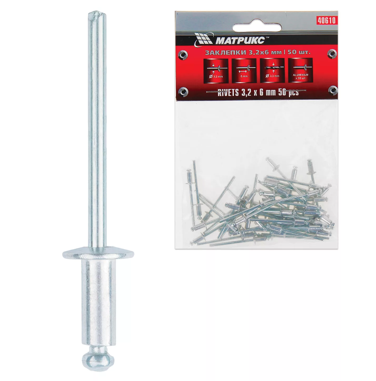 Заклепки Matrix предназначены для соединения листовых заготовок. Обеспечивают надежную фиксацию материалов даже при наличии доступа только с одной стороны. Используются в строительстве домов, при возведении заборов из профлиста, производстве оборудования, будут полезны в домашней мастерской.